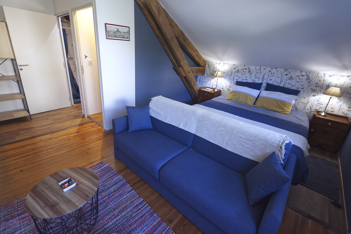 - Chambre 3 : 1 lit 180×200, un canapé-lit 180×200