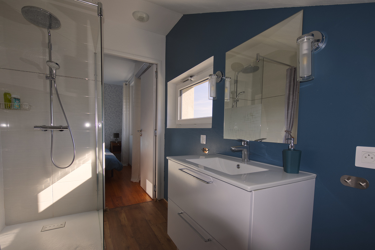 - Salle de bains 1 : Douche à l’italienne, Vasque, Sèche-cheveux, Sèche-serviettes